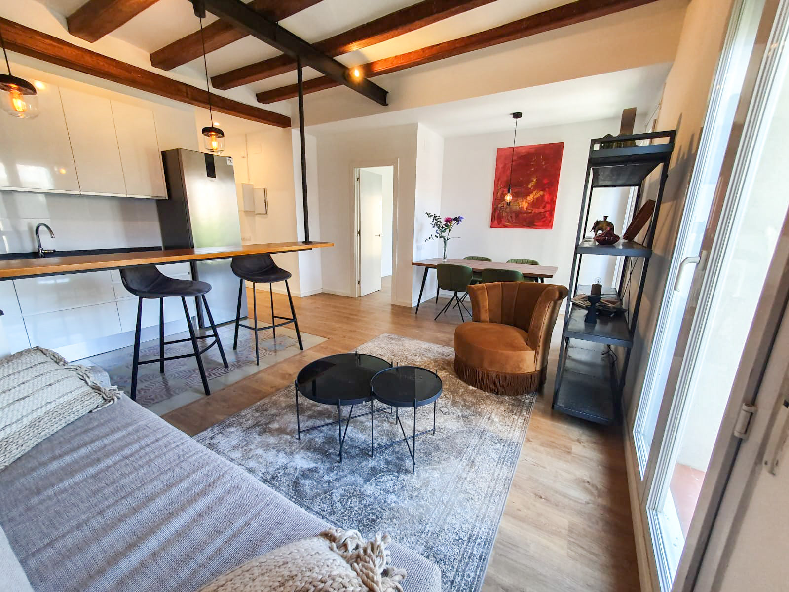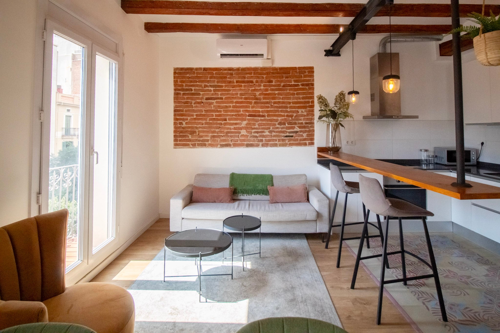 Balcones luminosos con vistas a Barcelona, parquet cálido y un ambiente contemporáneo en una de las zonas más exclusivas de la ciudad.